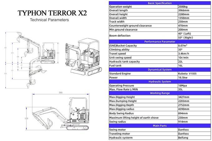 TYPHON TERROR X2 STORM Mini Excavator Key Features
