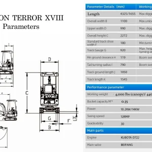 TYPHON TERROR XVIII Prestige 2 Ton Mini Excavator KUBOTA D902 Diesel Engine USA